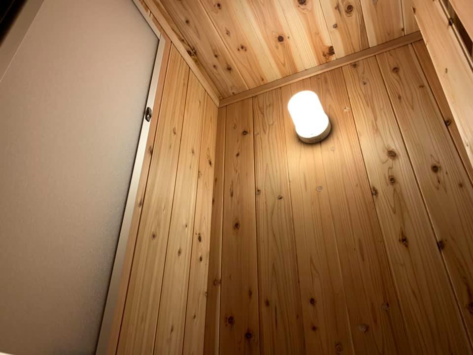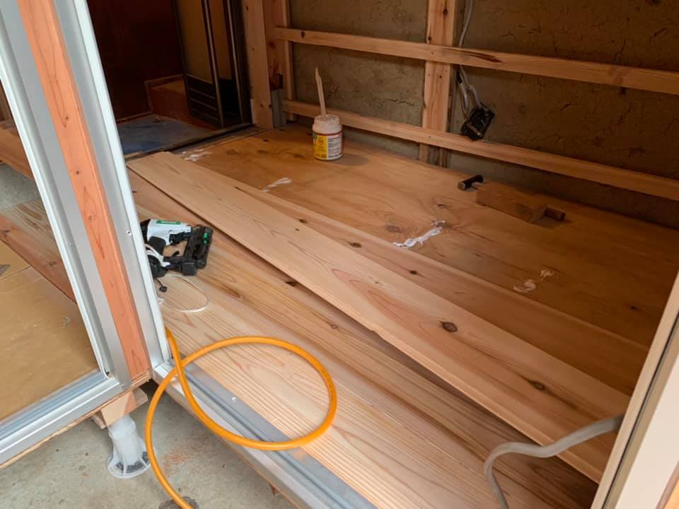 【あともう少し!!】 ただいま五右衛門風呂用の脱衣所製作中です
